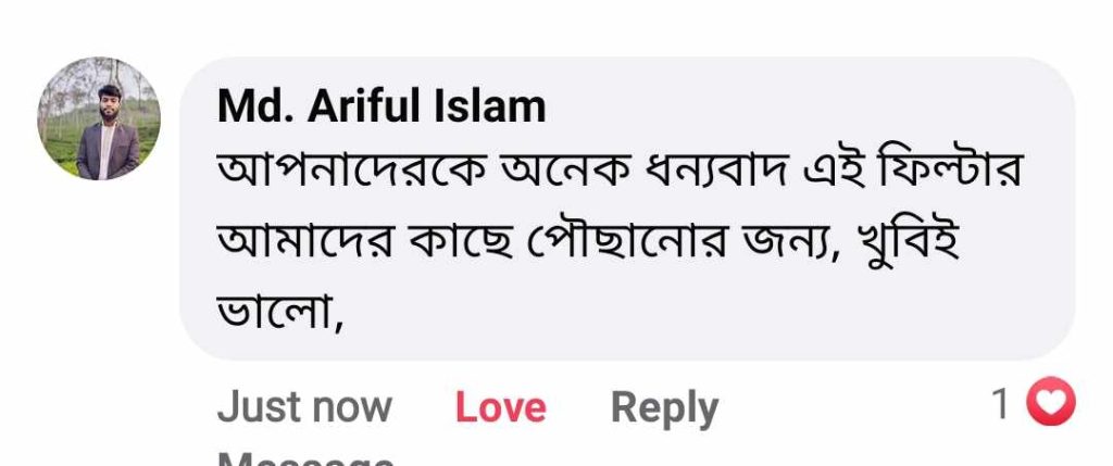 আমাদের ফিল্টার সম্পর্কে কাস্টমারের মূল্যবান মতামত