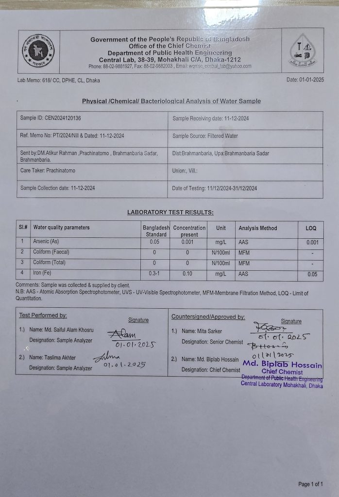 এই ফিল্টারের পানি পানে ক্যান্সার হওয়ার ঝুকি থাকে না।